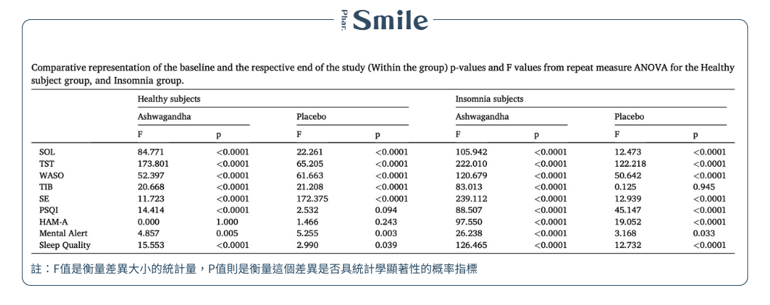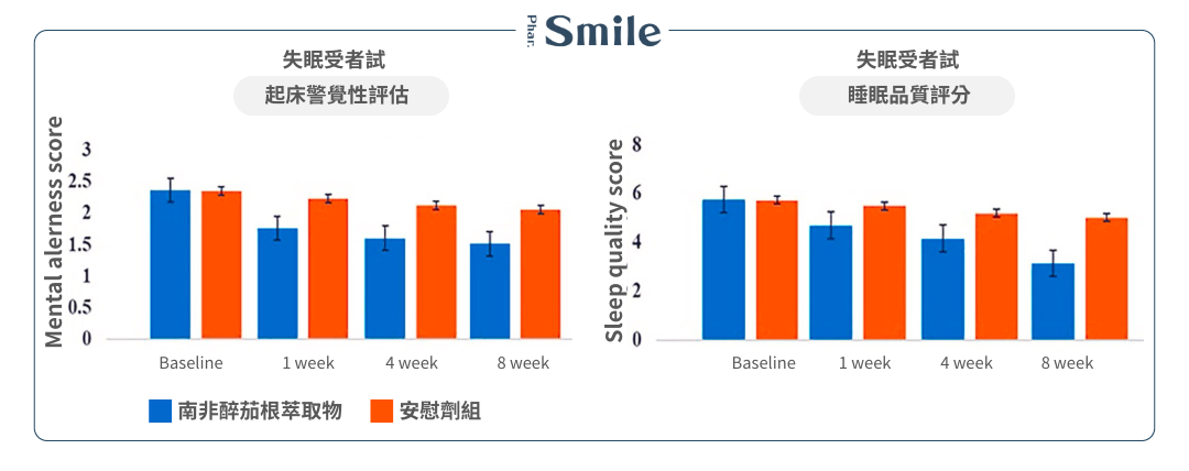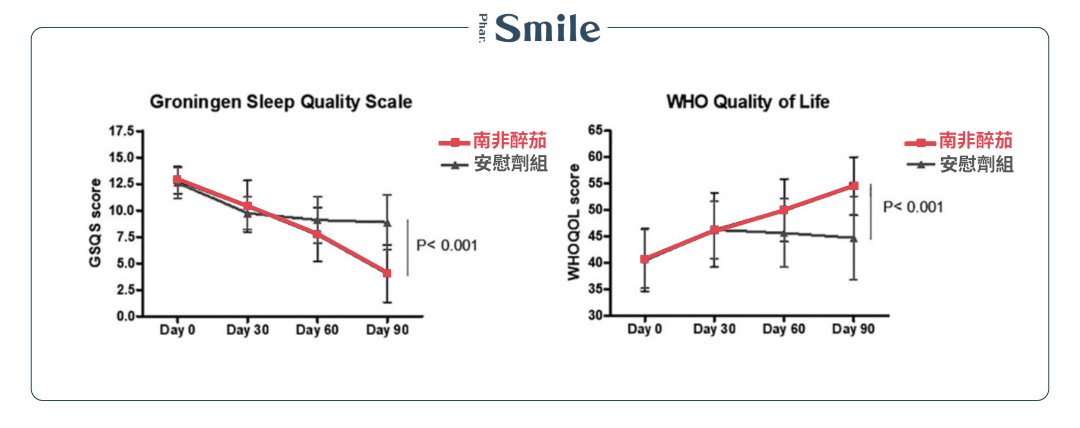 1.補充南非醉茄根萃取物的受試者的睡眠參數均顯著改善,失眠受試者的改善程度優於健康受試者