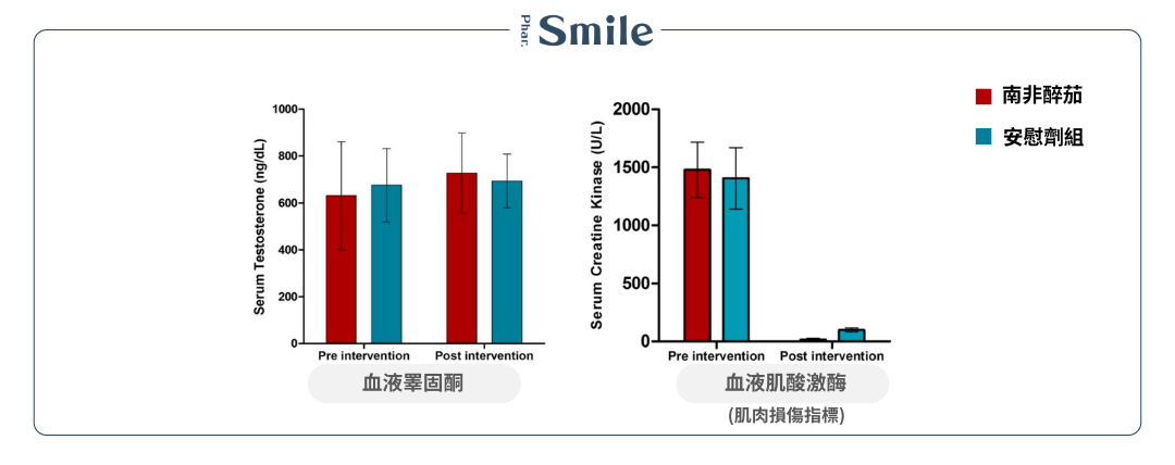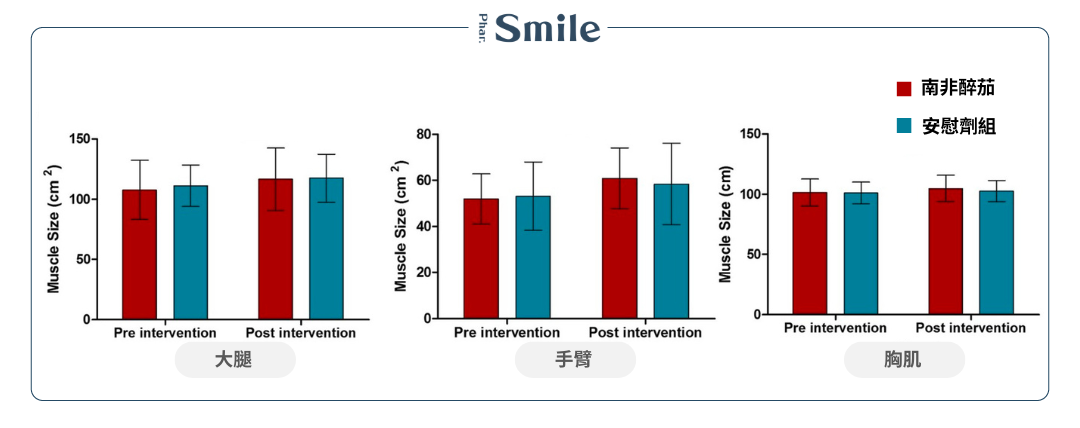 2015年前瞻性隨機雙盲安慰劑對照試驗,收錄50名健康成年男女運動員,隨機分成實驗組(每日兩次,每次300毫克南非醉茄根萃取物)或安慰劑對照組,介入12週。研究結果顯示,與安慰劑組相比,南非醉茄介入組顯著增加最大攝氧量(VO2max)並改善運動員的生活品質。研究結果表明,南非醉茄根萃取物能夠增強健康成年運動員的心肺耐力並改善其生活品質【7】。而2020年的系統性回顧及統合分析結果顯示,南非醉茄能顯著提高健康成年人和運動員的最大攝氧量VO2max(p = 0.04),平均差異為 3.00(95% 信賴區間為 0.18 至 5.82),異質性較高【20】。2015年前瞻性隨機雙盲安慰劑對照試驗,收錄57名健康成年男受試者,隨機分成實驗組(每日兩次,每次300毫克南非醉茄根萃取物)或安慰劑對照組,並接受肌肉阻力訓練,為期8週。研究結果發現,相較於安慰劑組,服用南非醉茄受試者在肌力、肌量及睪固酮的增加程度明顯較佳,體脂下降效果也較佳,而且訓練時肌肉損程度明顯較小【21】。2025年隨機安慰劑對試研究,探討了南非醉茄對職業女運動員運動恢復和肌肉力量的影響。共收錄30位女足球員,評估每天補充600毫克南非醉茄或安慰劑,持續28天。研究結果顯示,南非醉茄可以改善女性足球員的總恢復品質,並提升主觀感受的睡眠品質【22】。